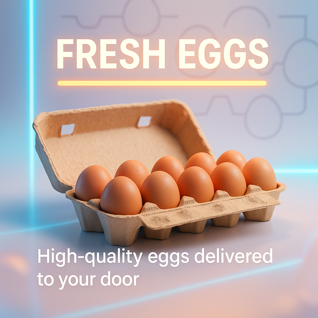 Farm Fresh Eggs Promotional Image with Modern Aesthetic