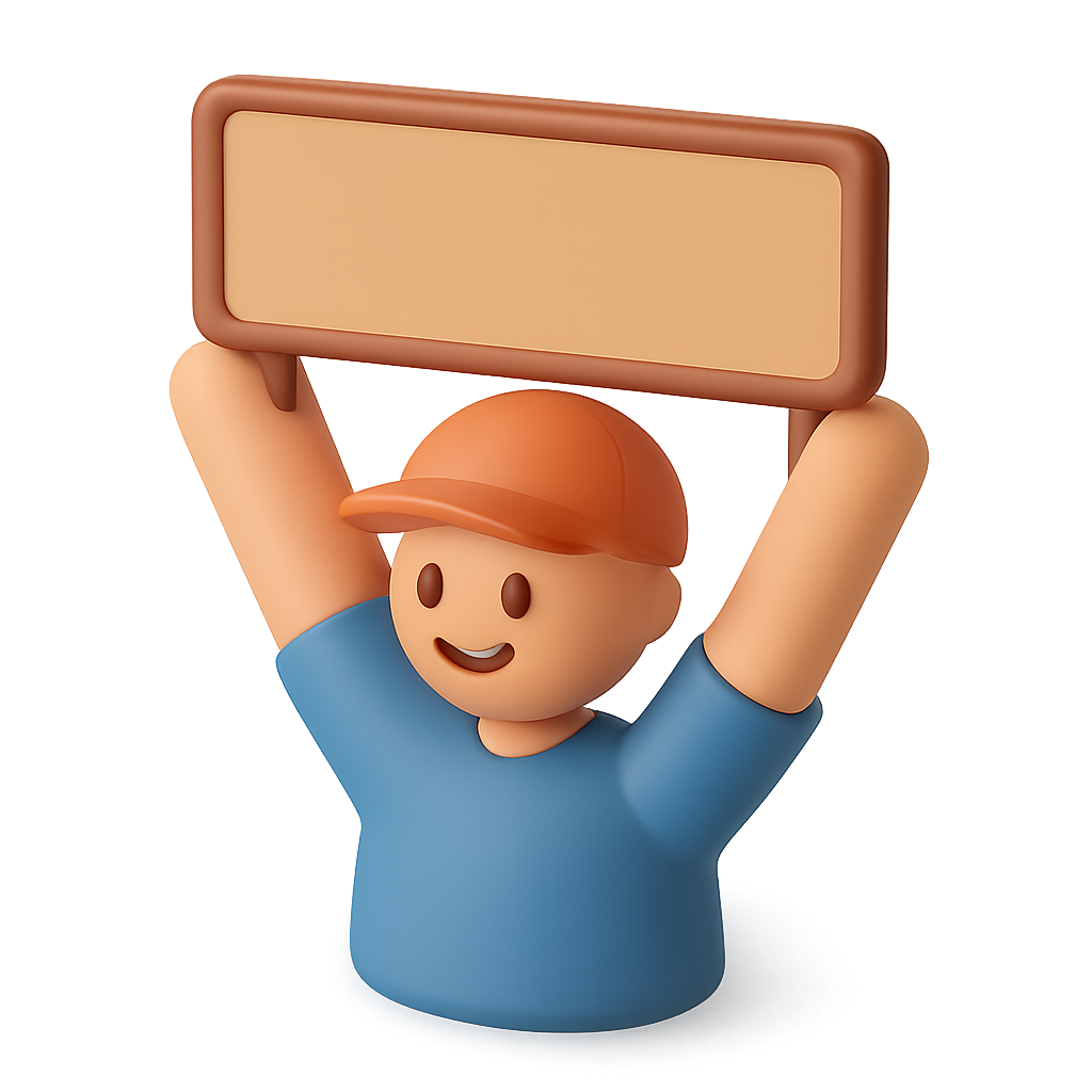 3D Icon of a Person Holding a Sign in Isometric View