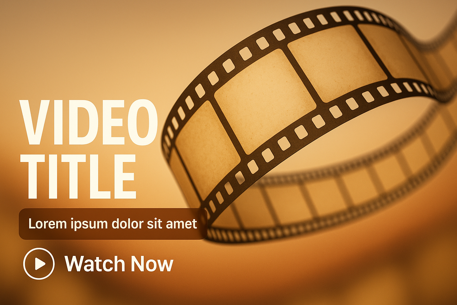 An engaging promotional graphic featuring a film strip design, ideal for video content marketing. The warm color palette and clear call to action enhance viewer engagement.