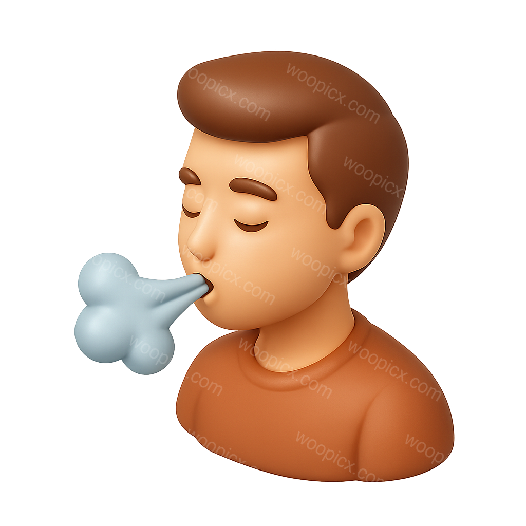 /Premium/Collection: /by davooda/Type: PNG/A stylized 3D icon depicting a person with closed eyes exhaling breath, illustrated in a three-quarter view with a volumetric effect. The background is transparent, enhancing the focus on the figure.