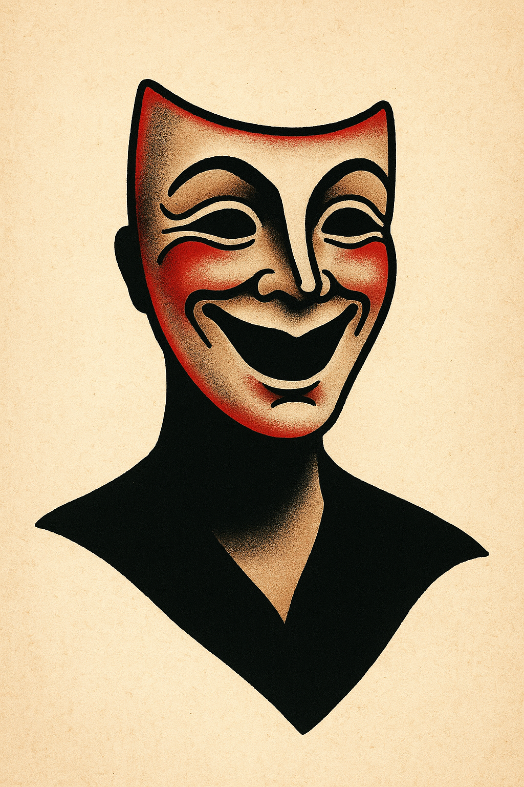 Mask of Happiness with Tears: A Classic Tattoo Design