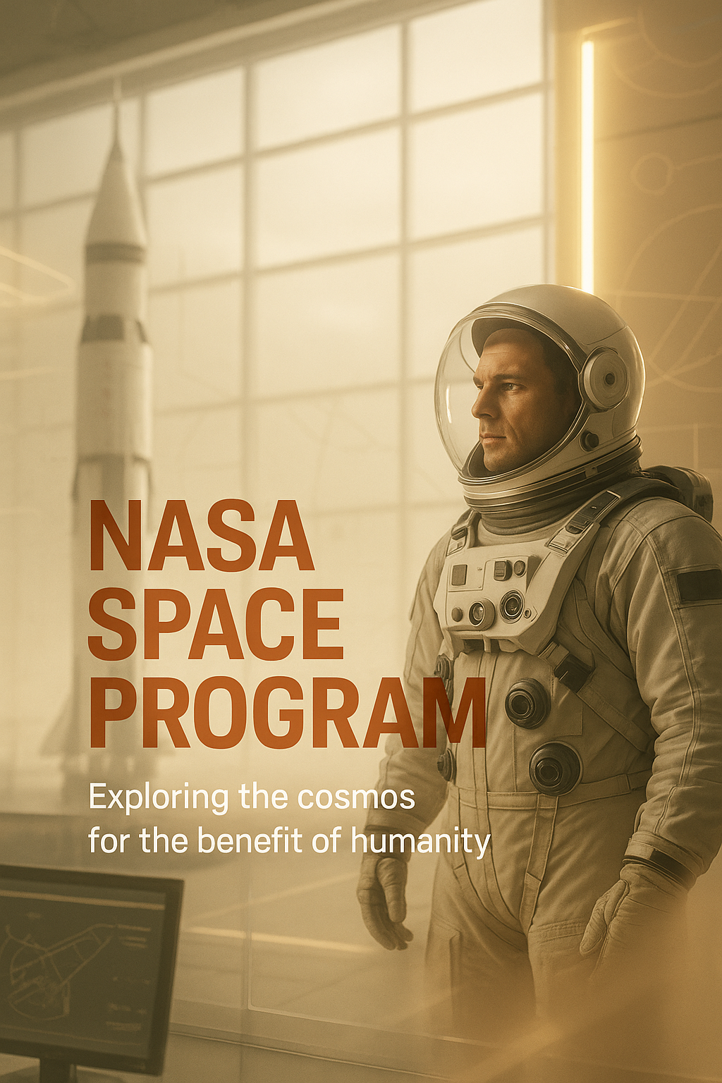 /Collection: /by davooda/Type: PNG/A visually striking promotional image showcasing an astronaut in a futuristic environment, representing NASA's mission to explore the cosmos for humanity's benefit. Ideal for educational or promotional uses.
