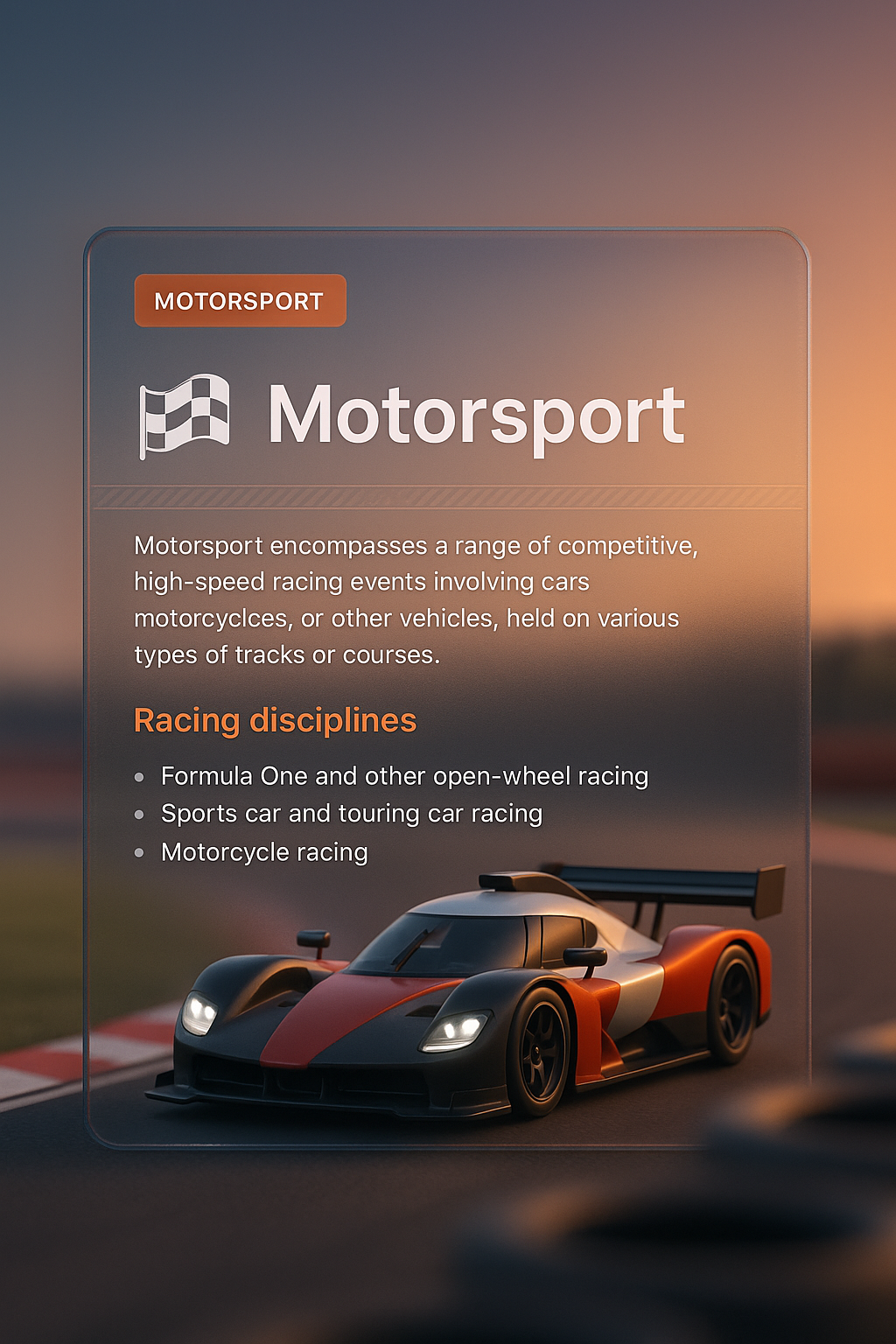 /Collection: /by davooda/Type: PNG/A visually striking 3D illustration of a racing car with integrated design elements. The layout features a transparent panel with text and icons that complement the dynamic background.