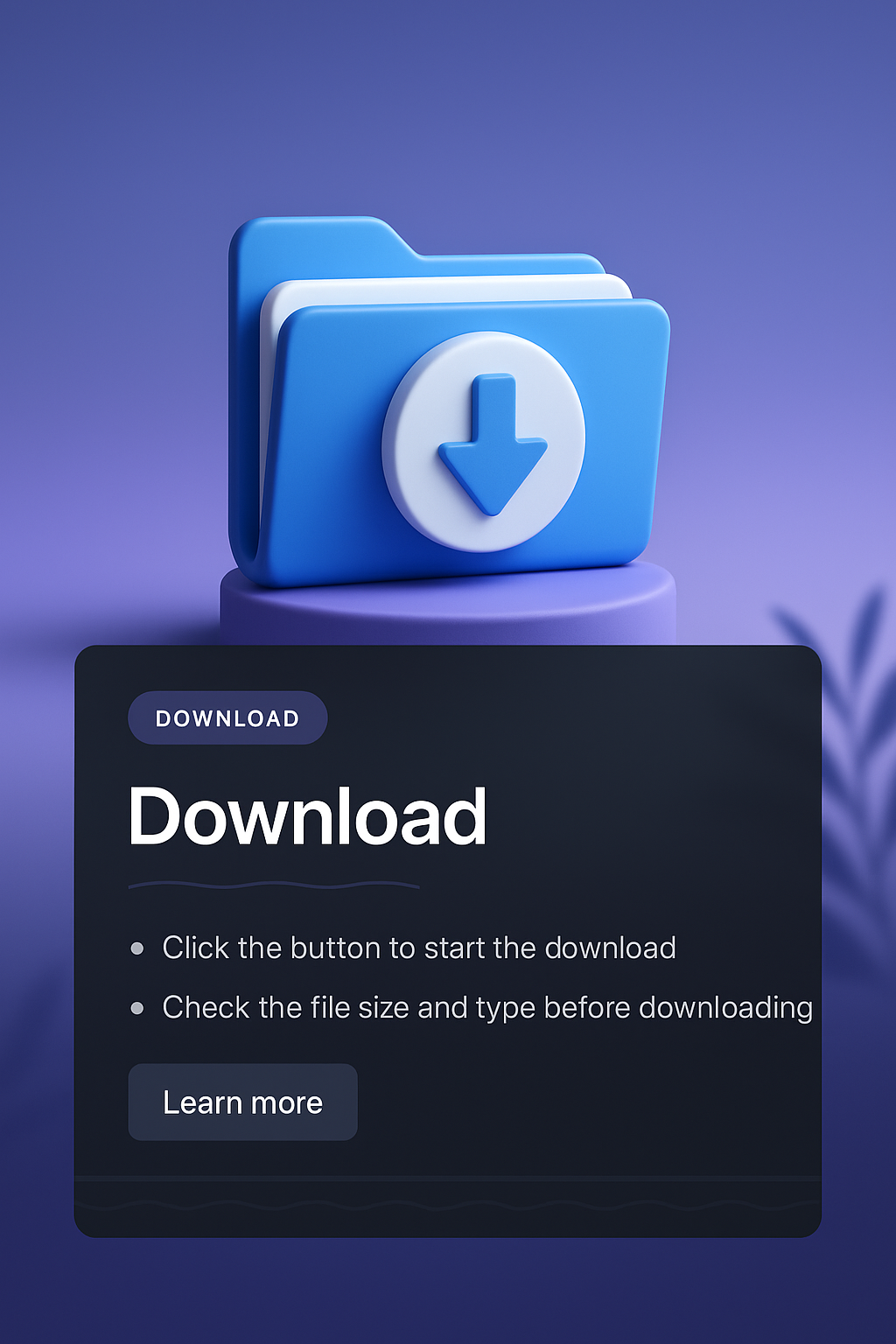 A visually captivating 3D illustration featuring a download button and folder icon on a gradient background. The design includes a dark overlay with informative text and a call-to-action.