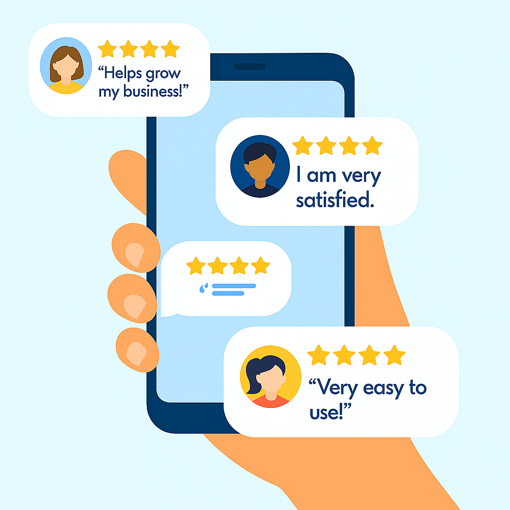 Customer Testimonial Graphic Featuring Positive Reviews