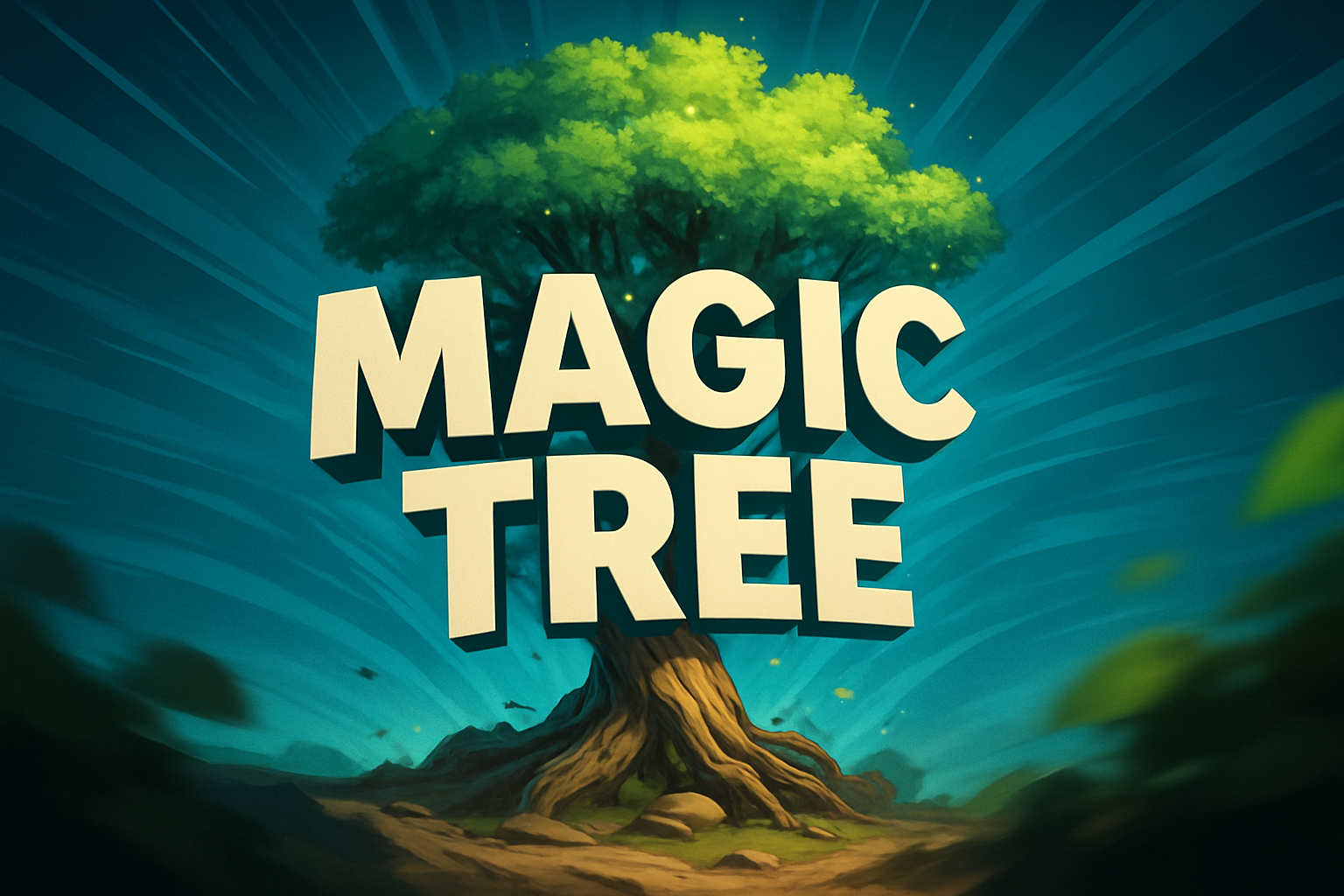 Dynamic Illustration of a Magic Tree with Vibrant Background
