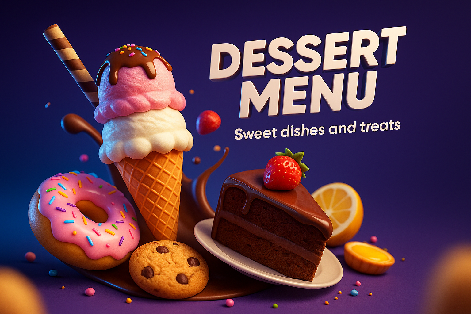 Dynamic 3D Dessert Menu Illustration for Engaging Presentation