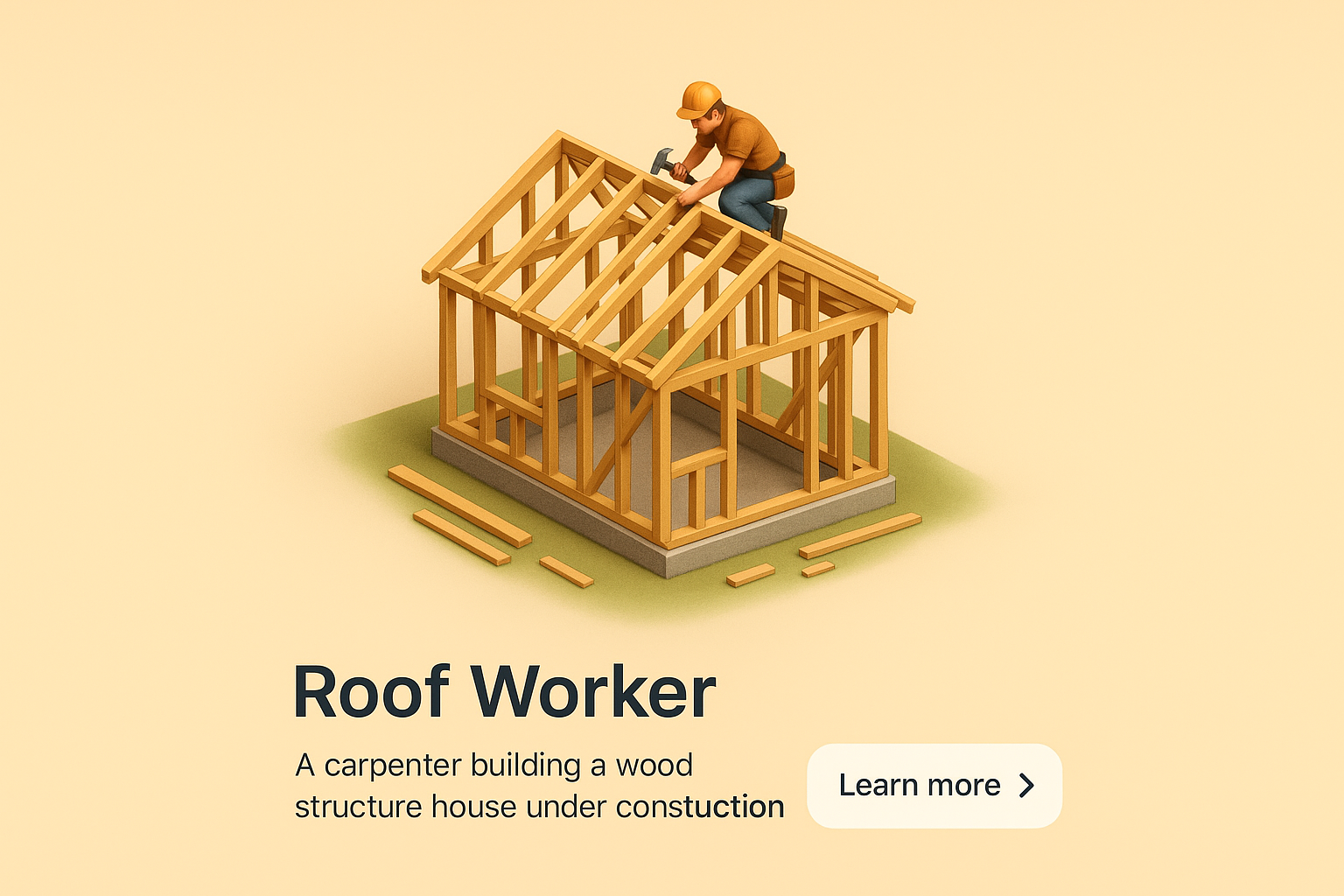Carpenter Building Wooden House Structure in 3D Style