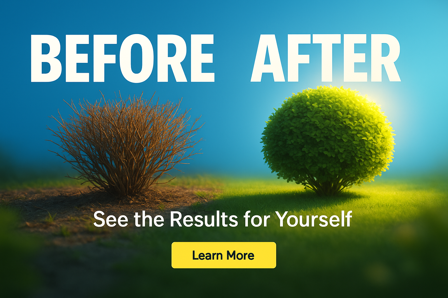 This image showcases a before-and-after transformation of a landscape, emphasizing growth and change. It features vibrant colors and a clear distinction between the two states, ideal for promotional content.