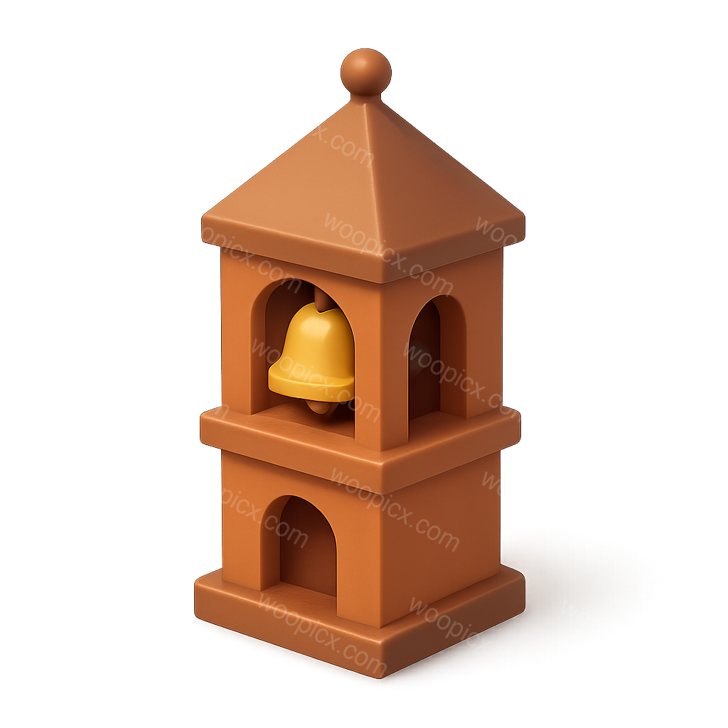 /Premium/Collection: /by davooda/Type: PNG/A stylized 3D representation of a bell tower, featuring a bell and an isometric design. The tower is presented in warm tones against a soft gradient background.