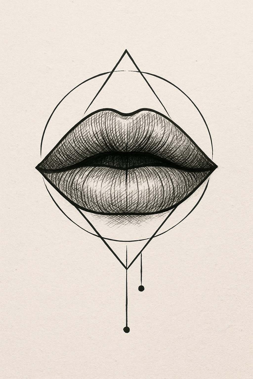 Artistic Illustration of Stylized Lips with Geometric Elements