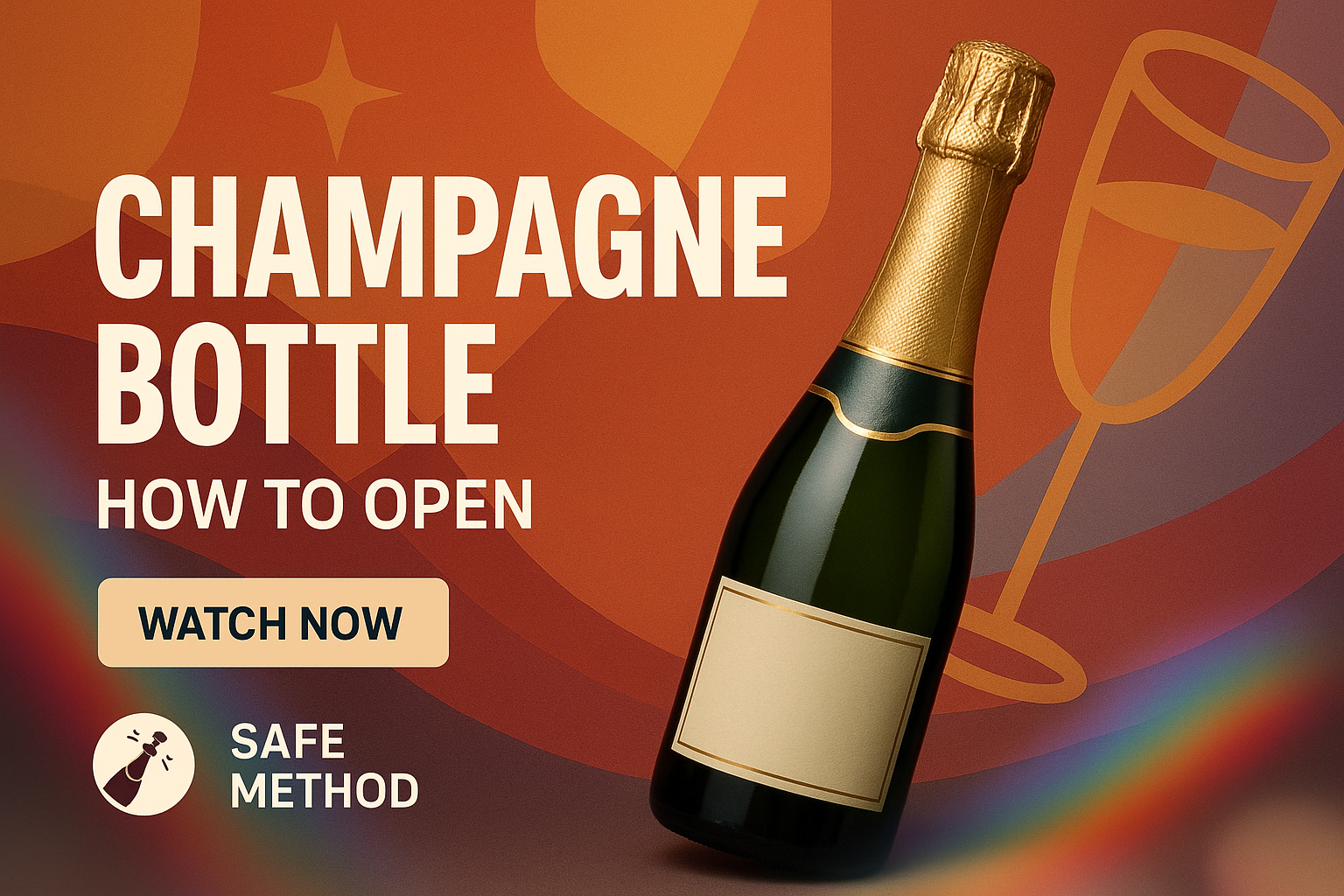 Engaging visual guide illustrating how to open a champagne bottle, featuring a clean design, playful colors, and illustrative elements. Ideal for lifestyle and celebration-related content.