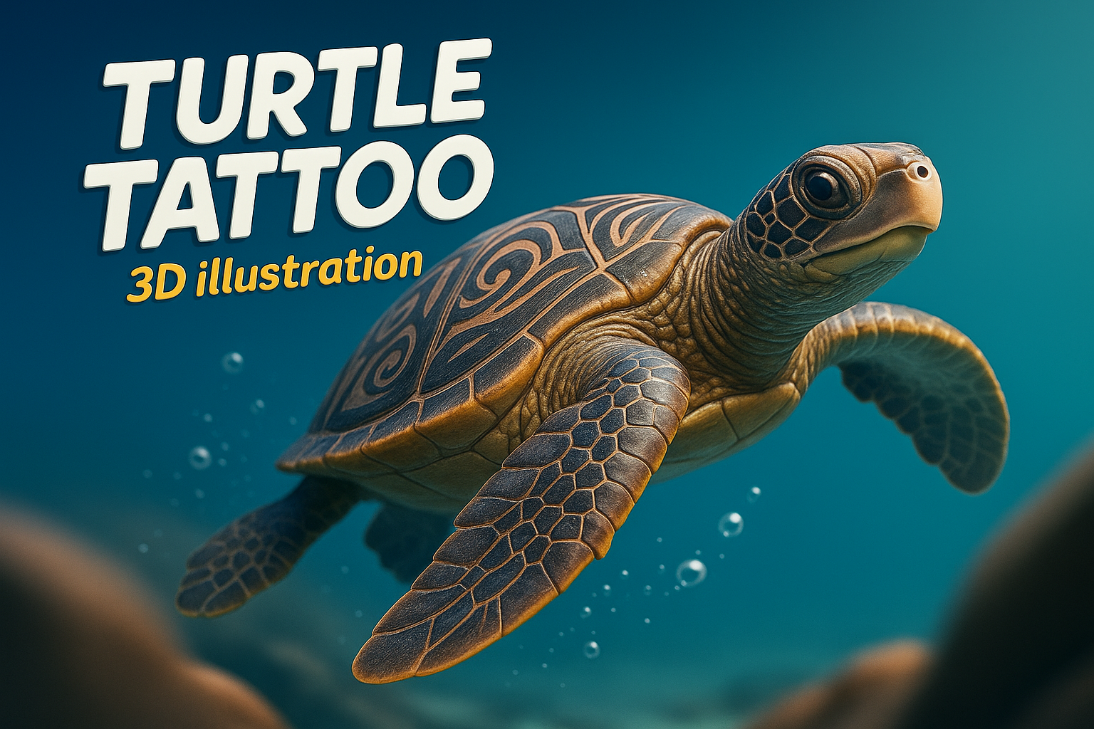 Dynamic 3D Turtle Tattoo Illustration with Engaging Design