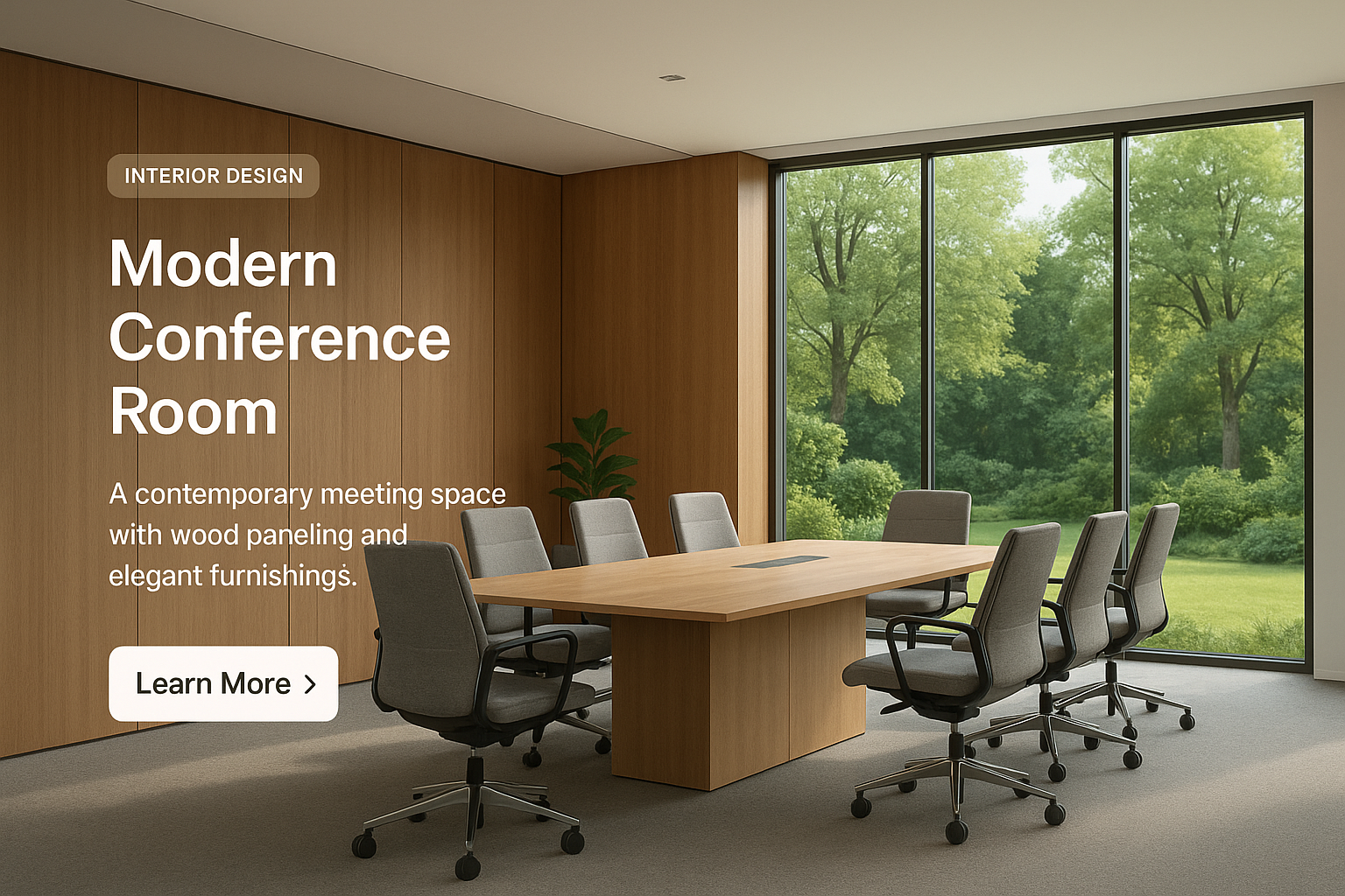/Collection: /by davooda/Type: PNG/A contemporary conference room featuring wooden paneling, elegant office furniture, and large windows showcasing a garden view, designed for functional meetings.