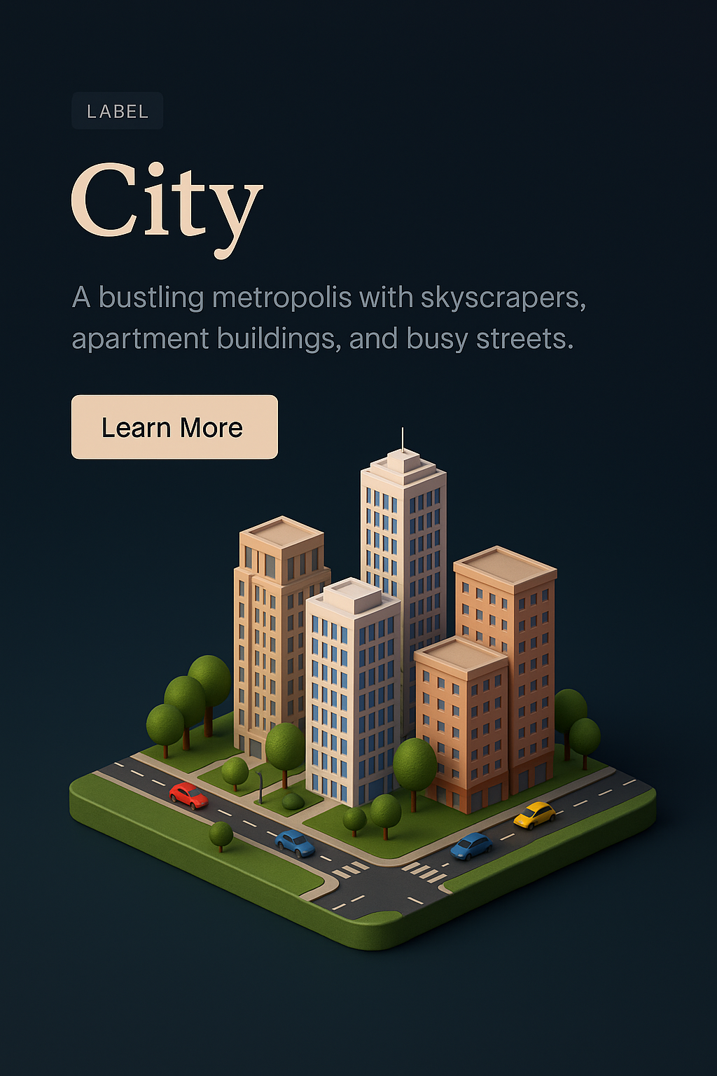 Aerial Cityscape 3D Illustration with Feature Block