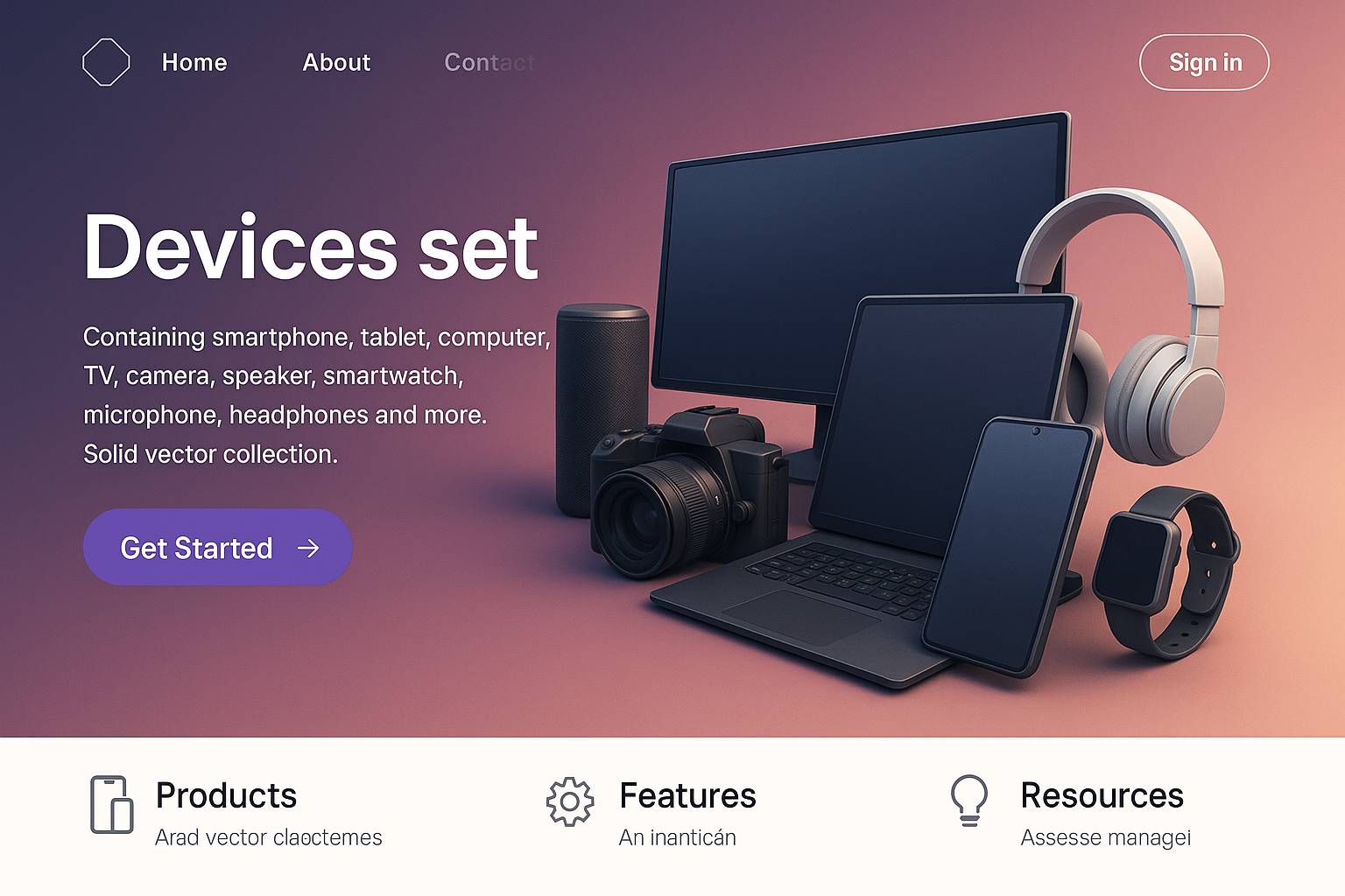 Futuristic Landing Page Design with Device Collection