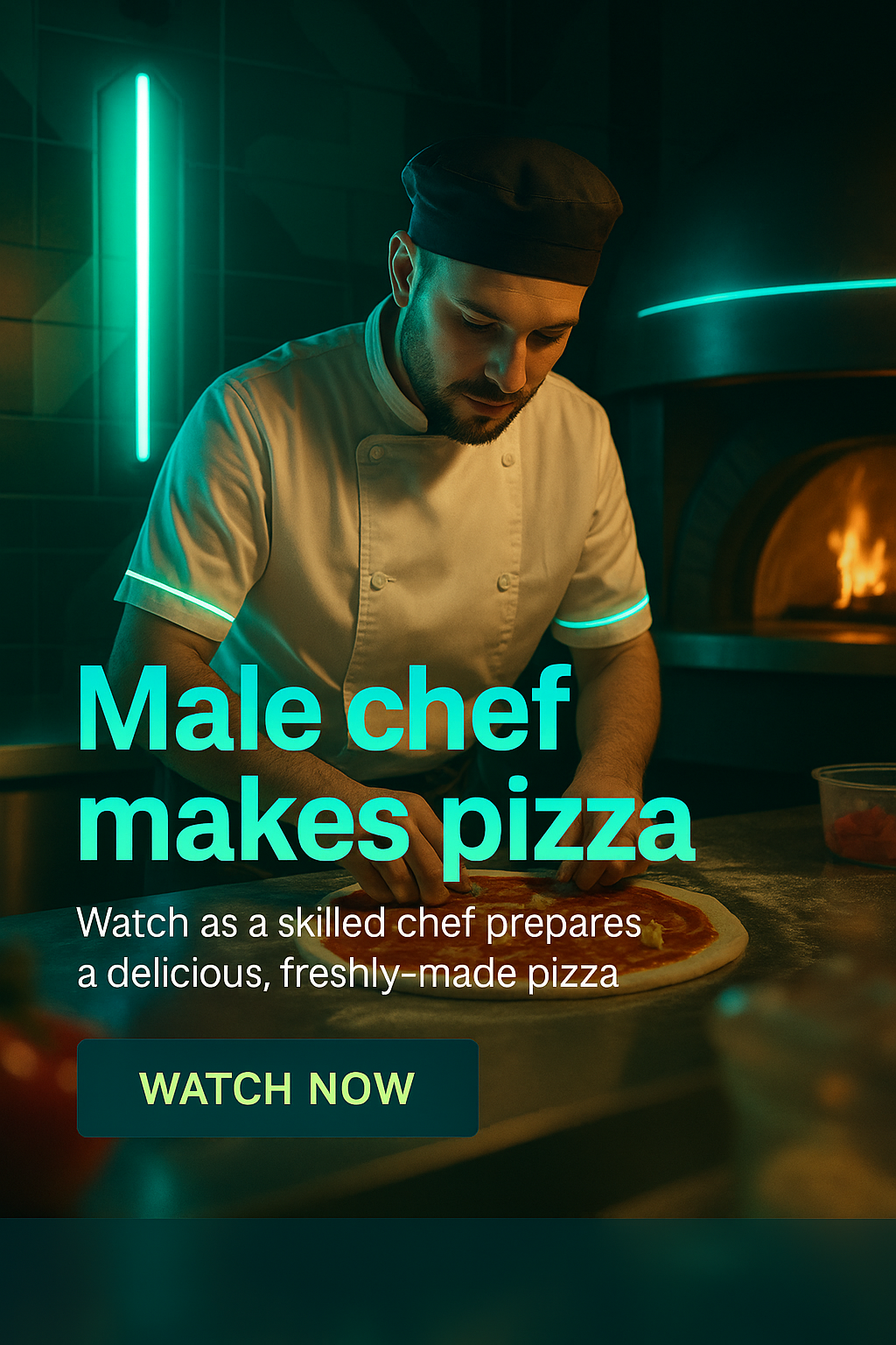 Promotional Image of a Chef Making Pizza in a Modern Kitchen