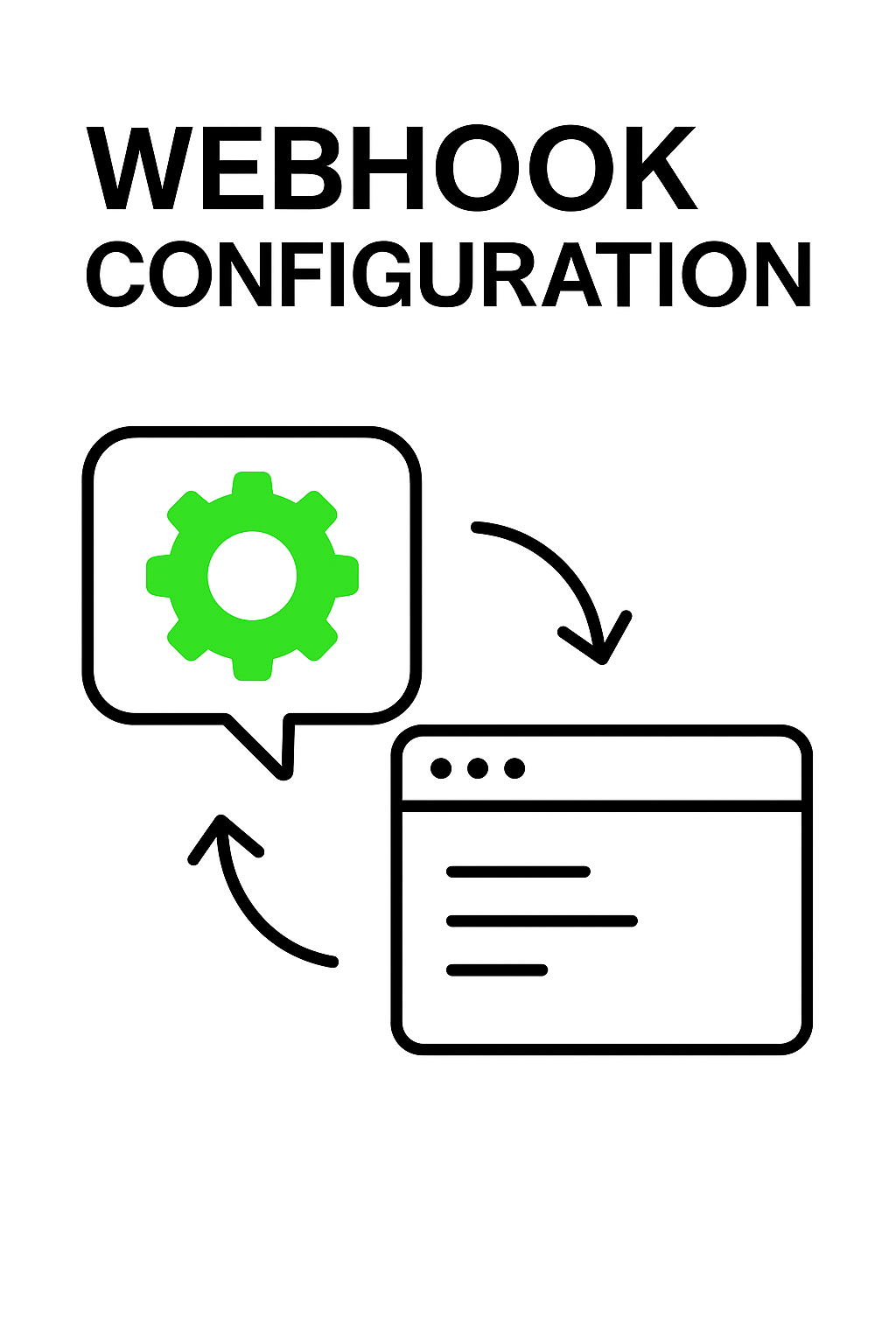Simplistic and modern graphic illustrating webhook configuration with an icon of a gear and a browser window, ideal for tech tutorials or software documentation.