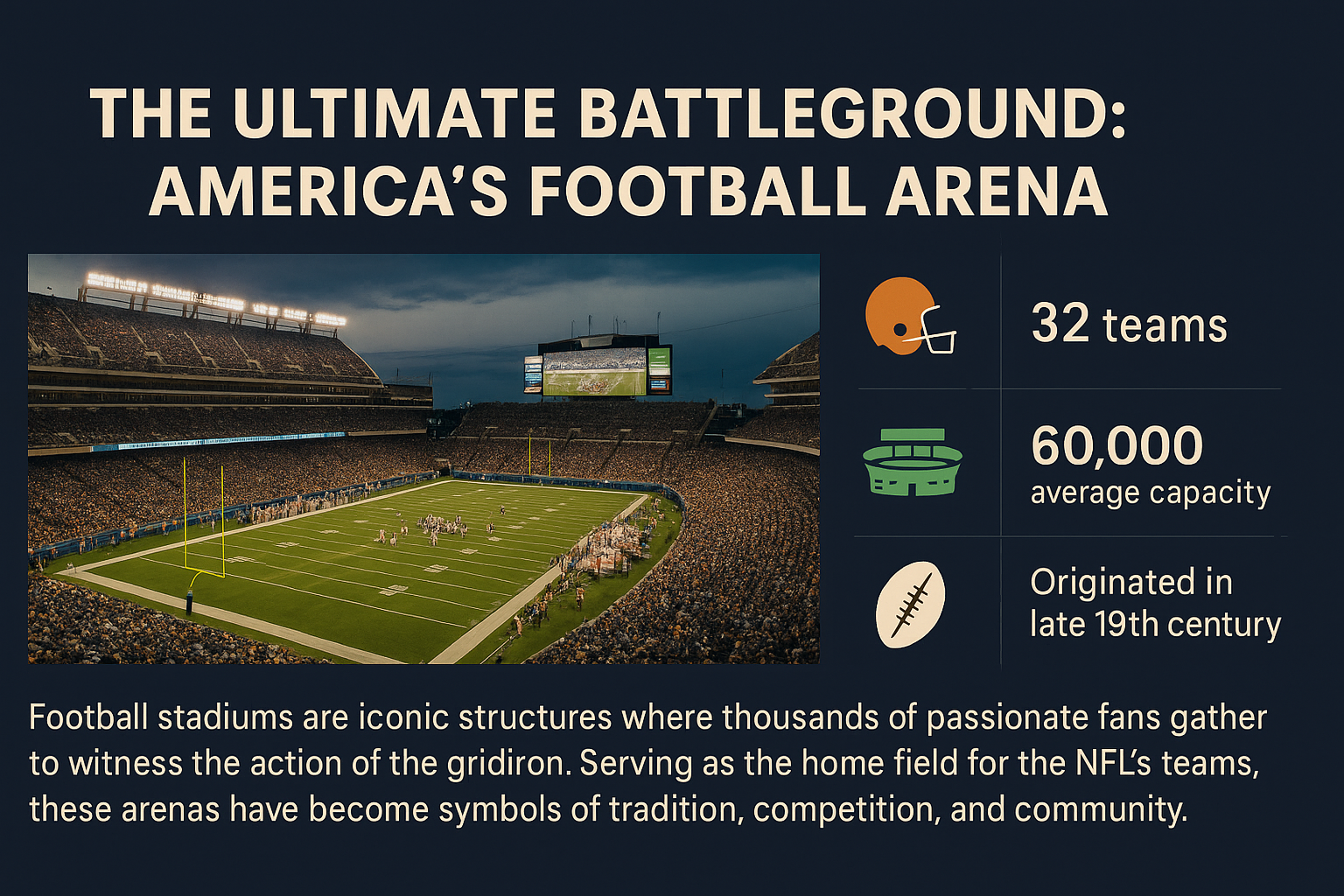 /Collection: /by davooda/Type: PNG/A visually engaging infographic illustrating the significance of American football arenas, featuring statistics and historical context. Ideal for sports enthusiasts and educational purposes.