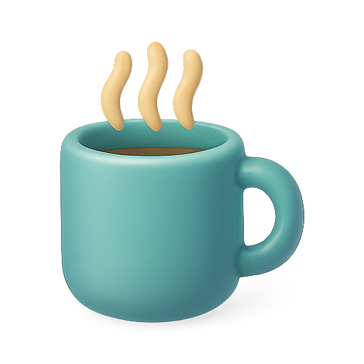 A modern, stylized illustration of a coffee mug with steam rising, perfect for use in digital applications related to beverages, wellness, or cozy themes.