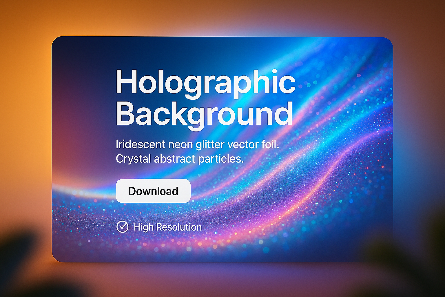 /Collection: /by davooda/Type: PNG/This image features a vibrant holographic background with iridescent neon glitter and abstract particles, ideal for graphic design projects or digital downloads.