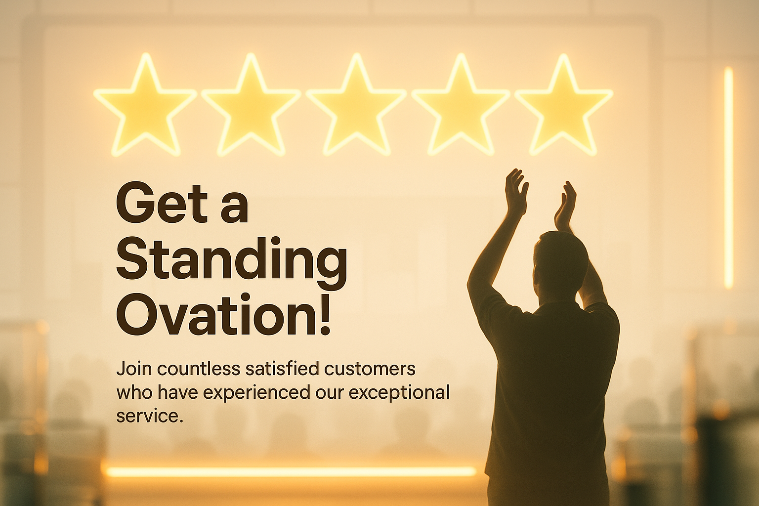 /Collection: /by davooda/Type: PNG/Engaging promotional image featuring a silhouette of a person applauding with star ratings in the background, ideal for showcasing customer satisfaction and service excellence.