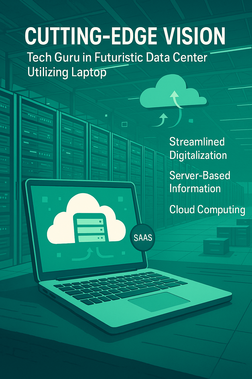 Futuristic Data Center Graphic Featuring Tech Guru and Digitalization Theme