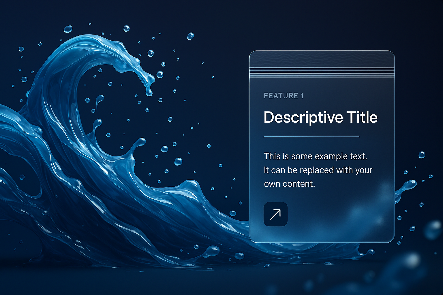 A stunning 3D illustration of flowing water waves and splashes on a dark background. The image features a text block for content integration, enhancing visual appeal.