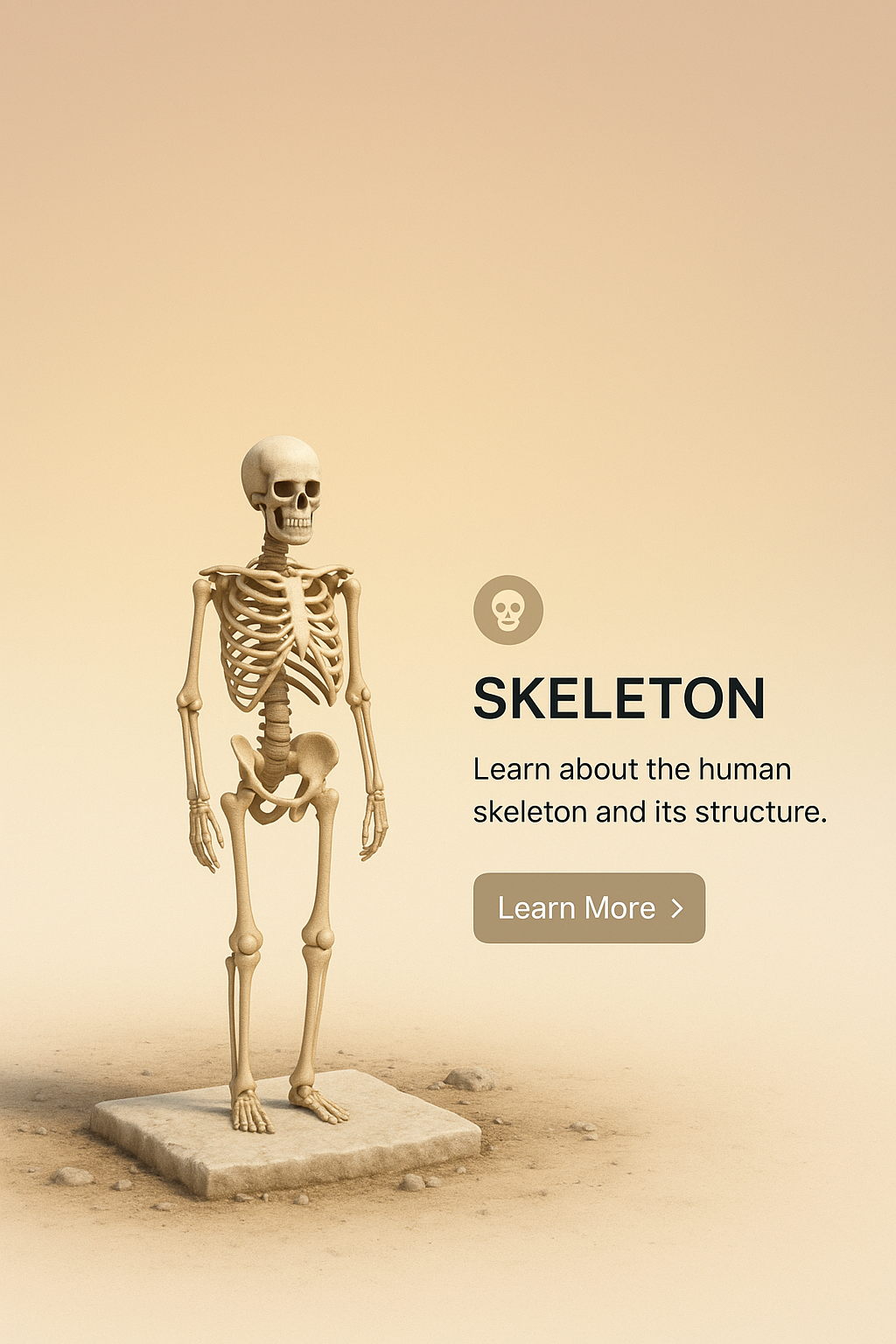 /Collection: /by davooda/Type: PNG/A visually appealing 3D representation of a human skeleton set against a smooth gradient background. The scene includes informative text and a call-to-action button, creating an engaging layout.