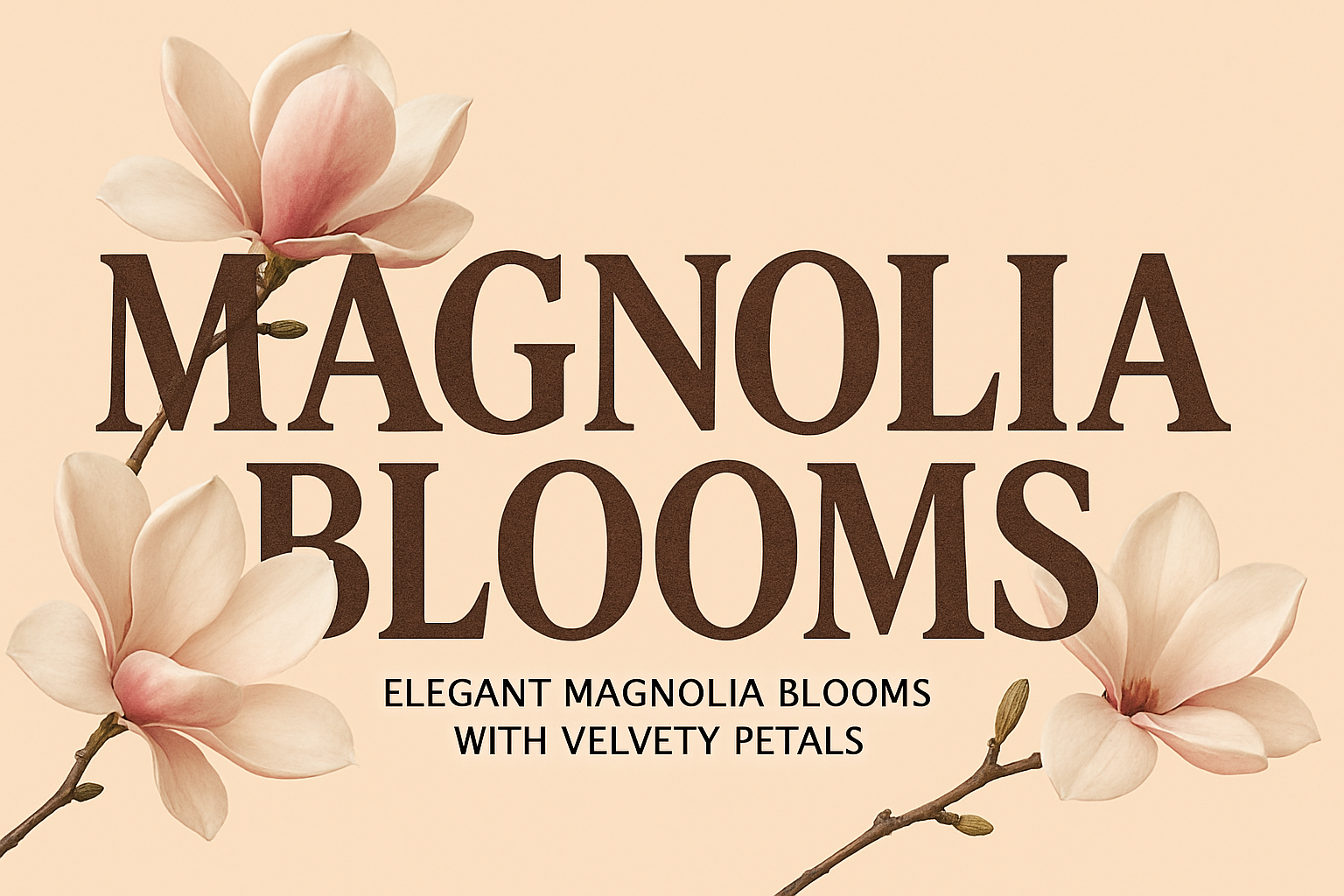Beautiful graphic showcasing magnolia flowers with velvety petals, ideal for floral-themed marketing or branding. The soft color palette and elegant typography enhance its appeal.