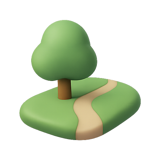 A colorful 3D illustration featuring a stylized tree on a grassy patch with a winding pathway, ideal for children's content, educational materials, or nature-themed designs.