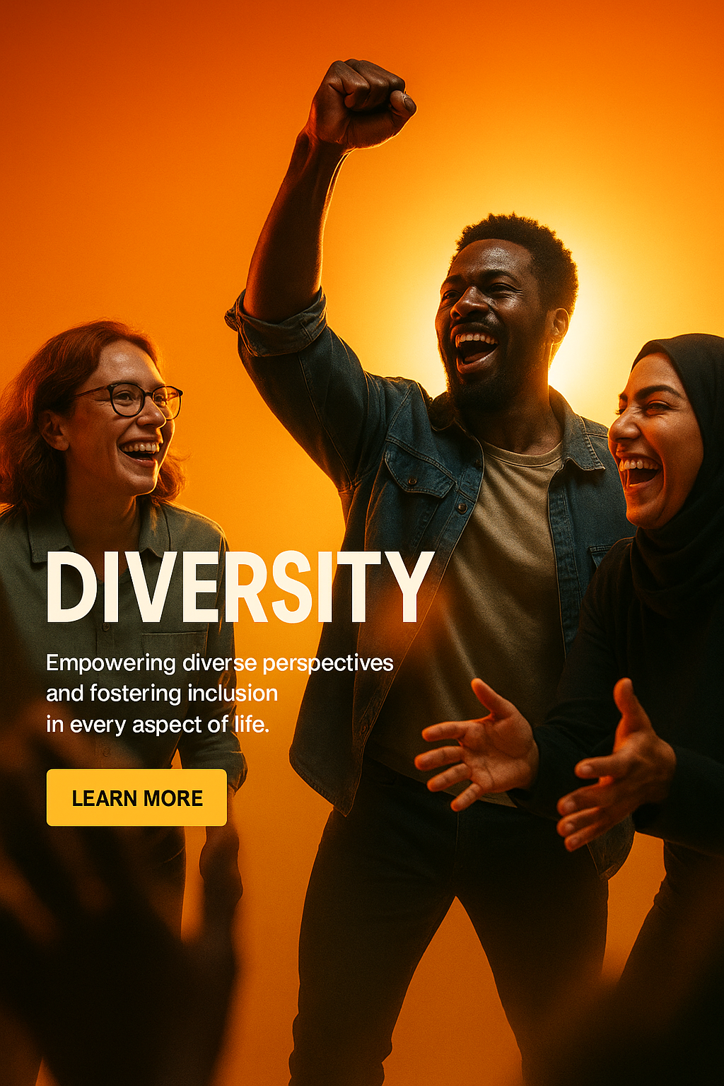 /Collection: /by davooda/Type: PNG/A vibrant social media post showcasing diverse individuals celebrating together. The warm color palette and joyful expressions emphasize inclusivity and empowerment.