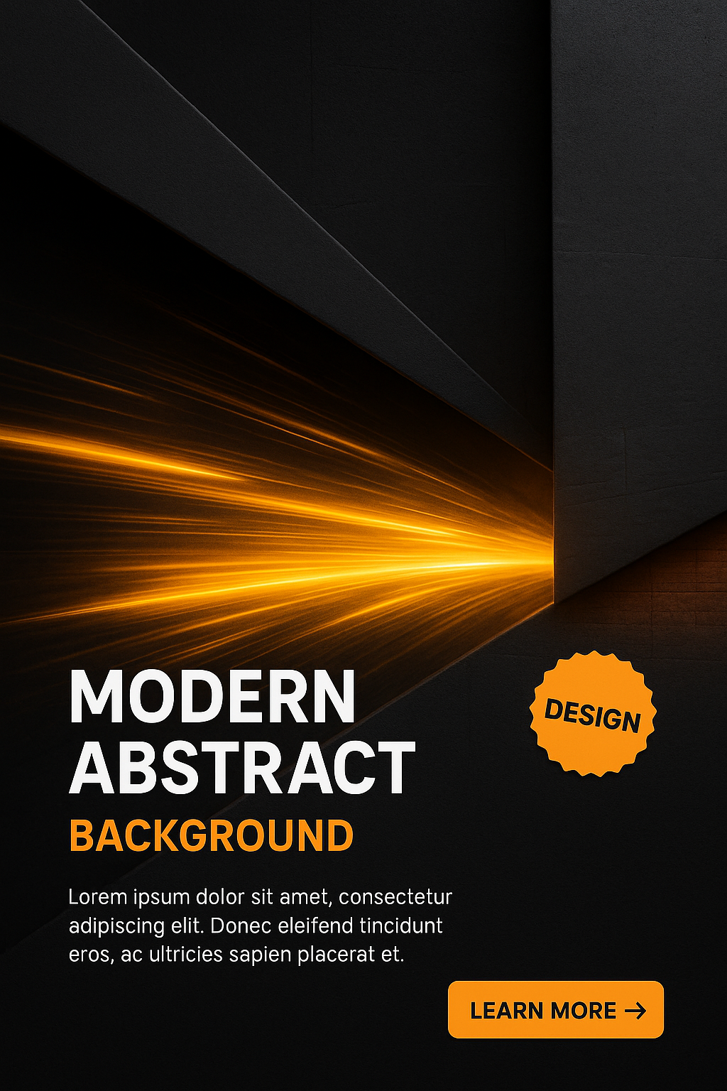 /Collection: /by davooda/Type: PNG/A modern abstract background featuring black and orange hues with a glowing yellow light effect. The design emphasizes geometric shapes and layered composition for a professional aesthetic.