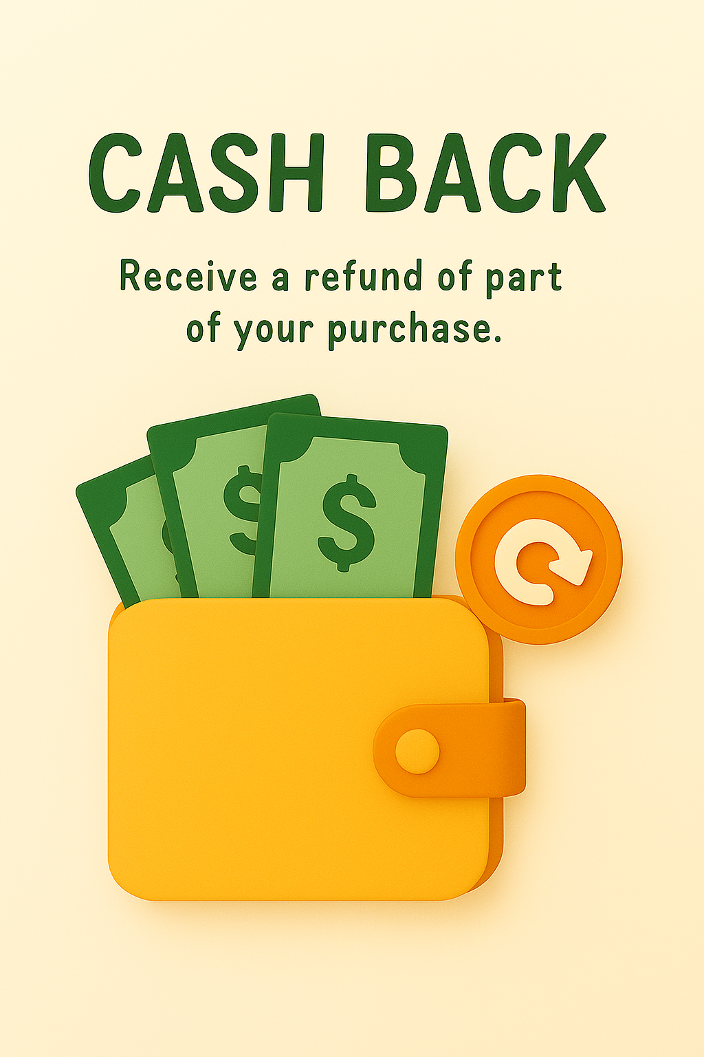 A vibrant 3D illustration depicting a wallet with dollar bills, promoting a cashback offer. Ideal for financial marketing or promotional materials.