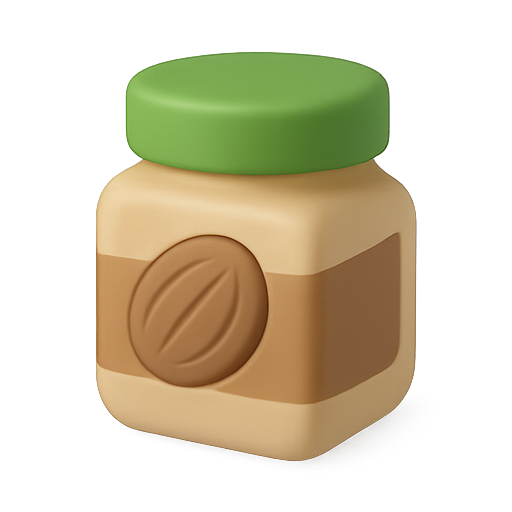 A 3D rendered decorative jar featuring a green lid and a brown label, ideal for use in food-related graphics, packaging designs, or digital illustrations.