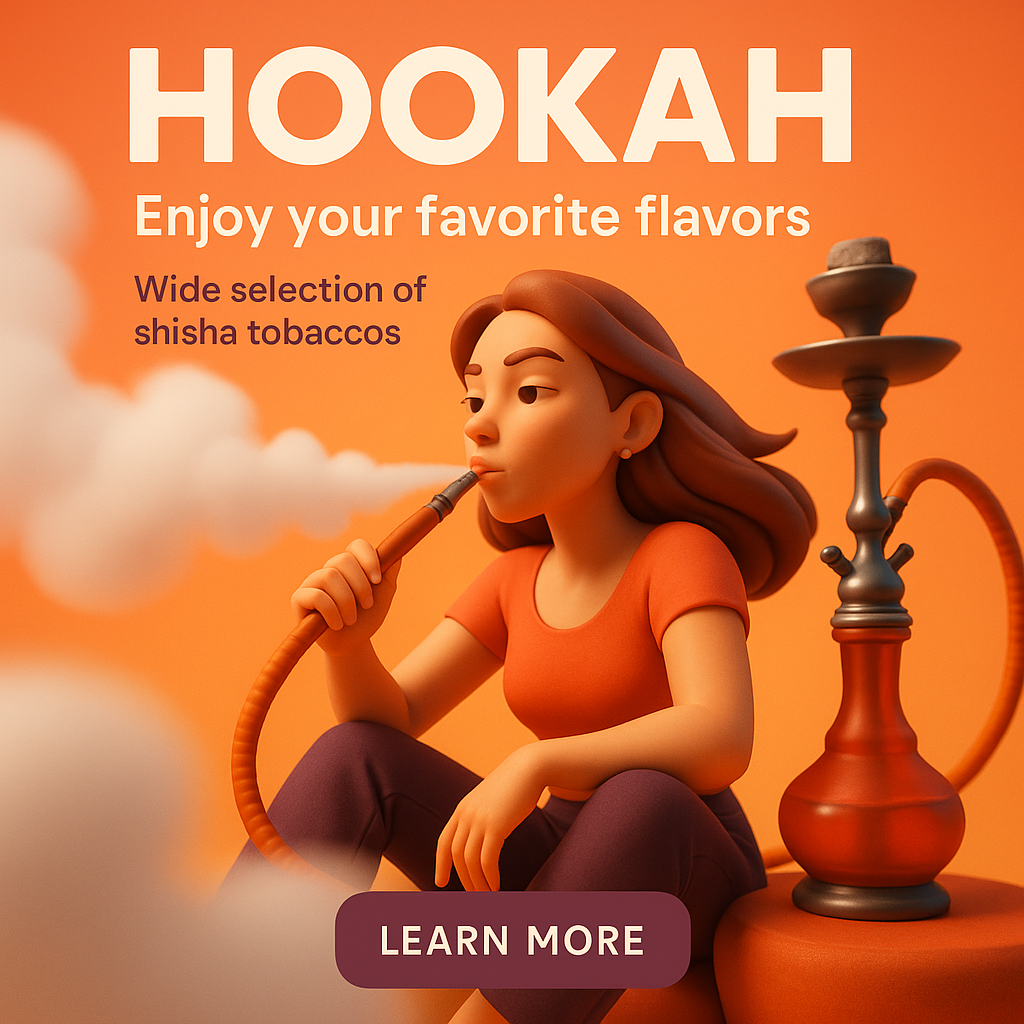 Promotional Graphic for Hookah Products Featuring Engaging Character