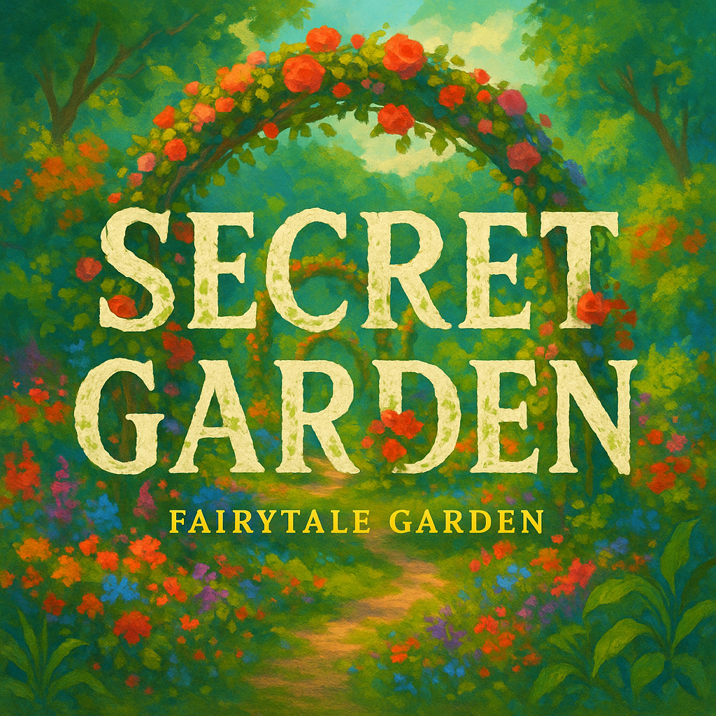 Whimsical Illustration of a Secret Garden with Vibrant Flora