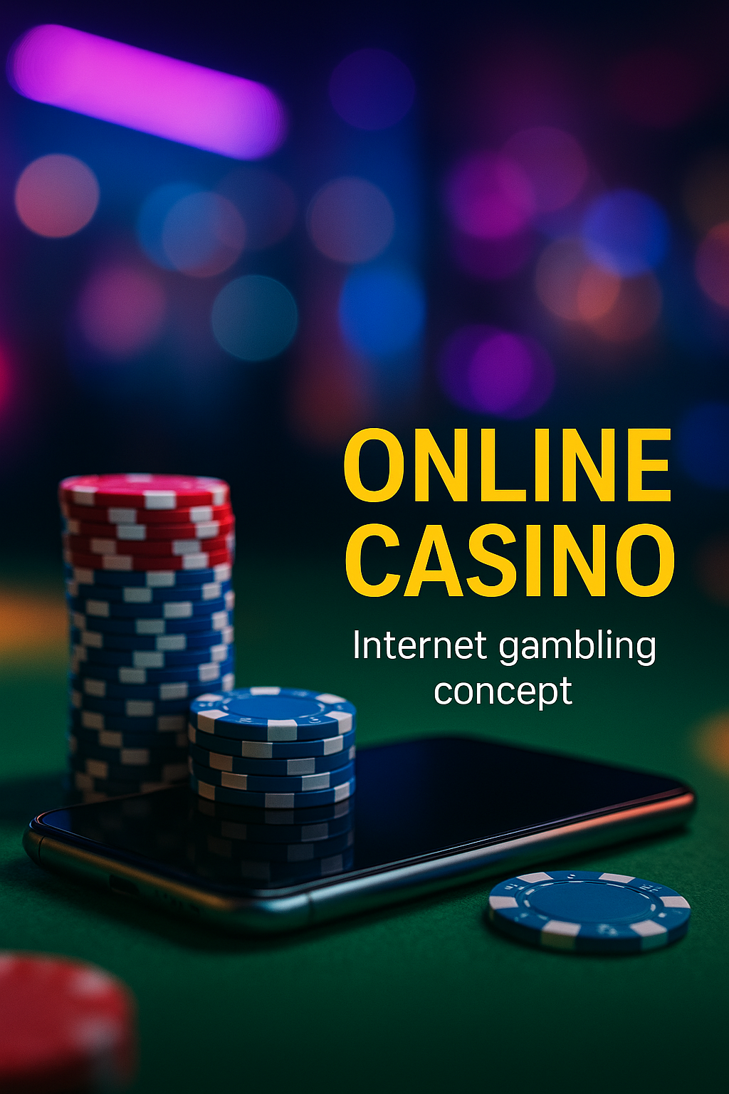 Vibrant visual representation of online gambling featuring poker chips and a smartphone, ideal for promoting casino-related content or services.