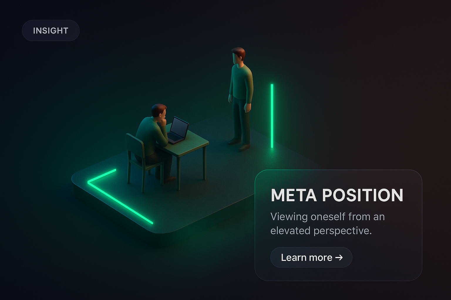 A vibrant 3D scene depicting two figures in a neon-illuminated environment, showcasing a meta position from an elevated perspective. The dark background highlights glowing accents.