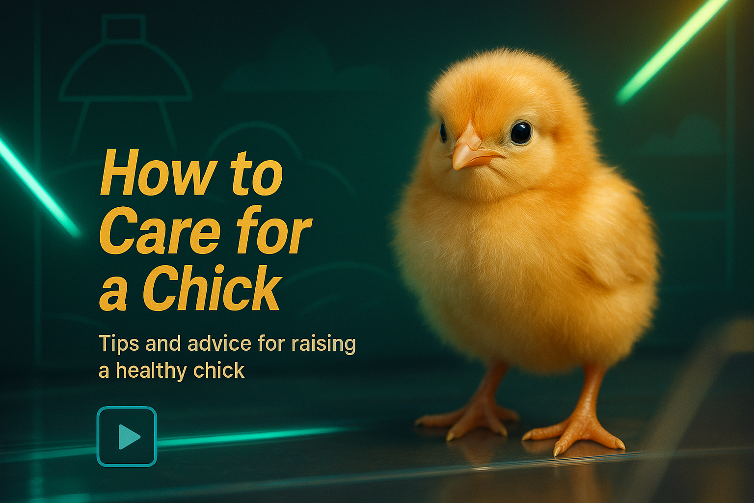 Engaging graphic featuring a cute chick, designed for an informative guide about chick care. The modern style and vibrant colors appeal to animal lovers and prospective pet owners.