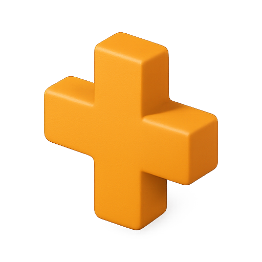 A sleek 3D representation of an orange plus sign, featuring a smooth surface and simple geometric design. Ideal for use in digital interfaces or as a decorative graphic element.