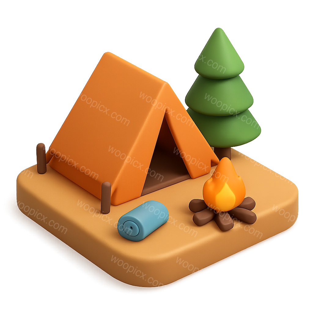 Realistic 3D Camping Scene with Tent Icon