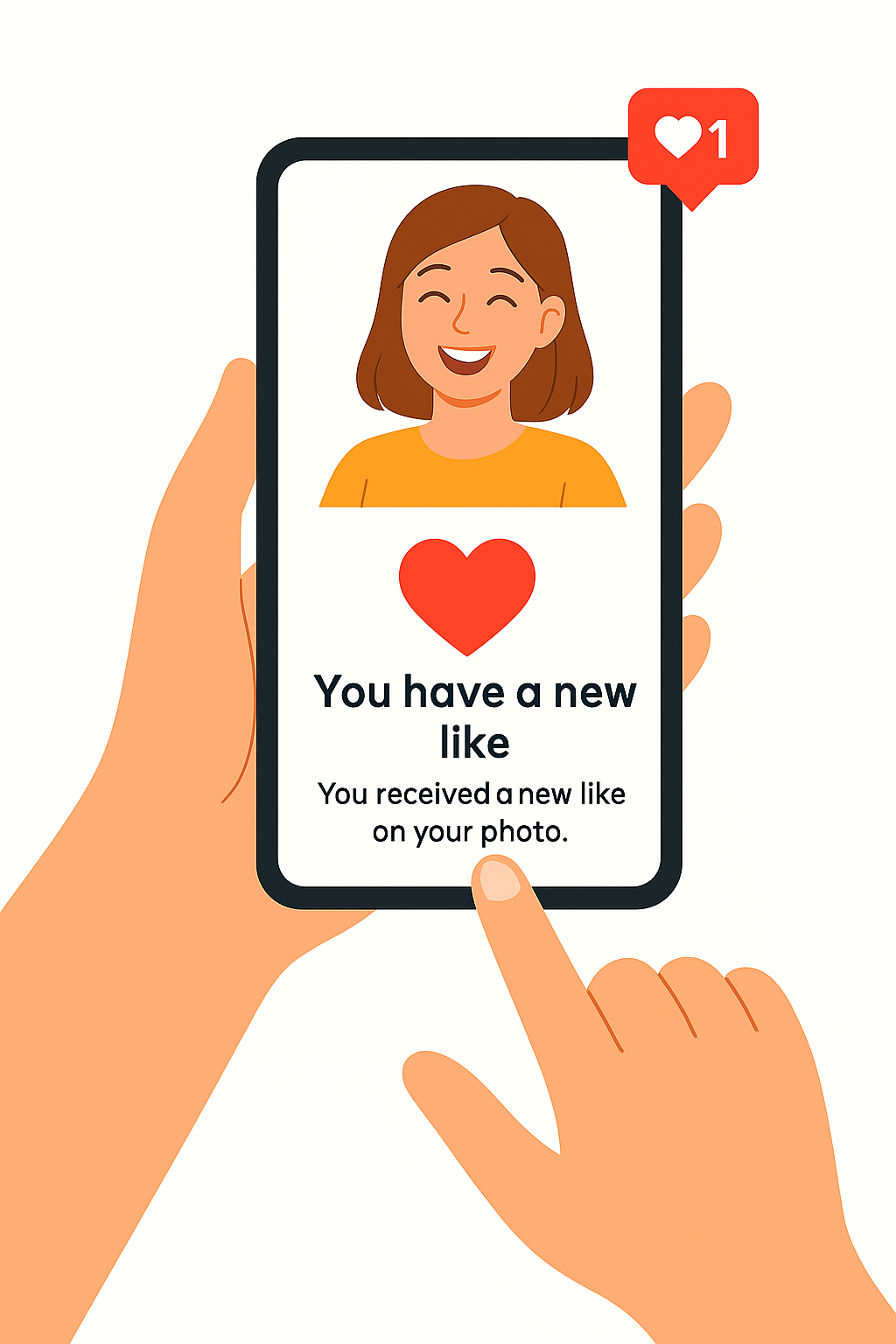 /Collection: /by davooda/Type: PNG/Illustrative graphic depicting a mobile phone with a notification about a new like on a photo. The design is vibrant and engaging, ideal for social media-related content.