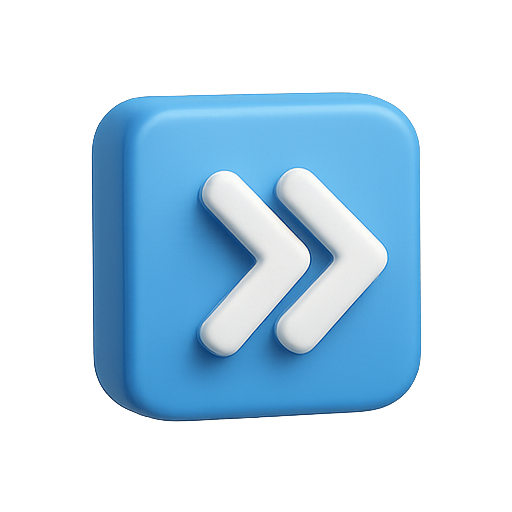 3D stylized icon featuring two white forward arrows on a blue background, ideal for digital interfaces and mobile applications focused on navigation and user interaction.