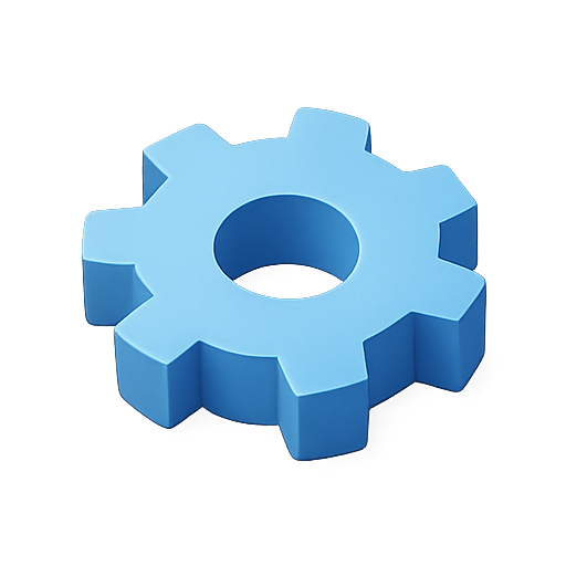 Stylized 3D blue gear icon representing technology and mechanisms, suitable for digital applications, tech-related content, and design projects.