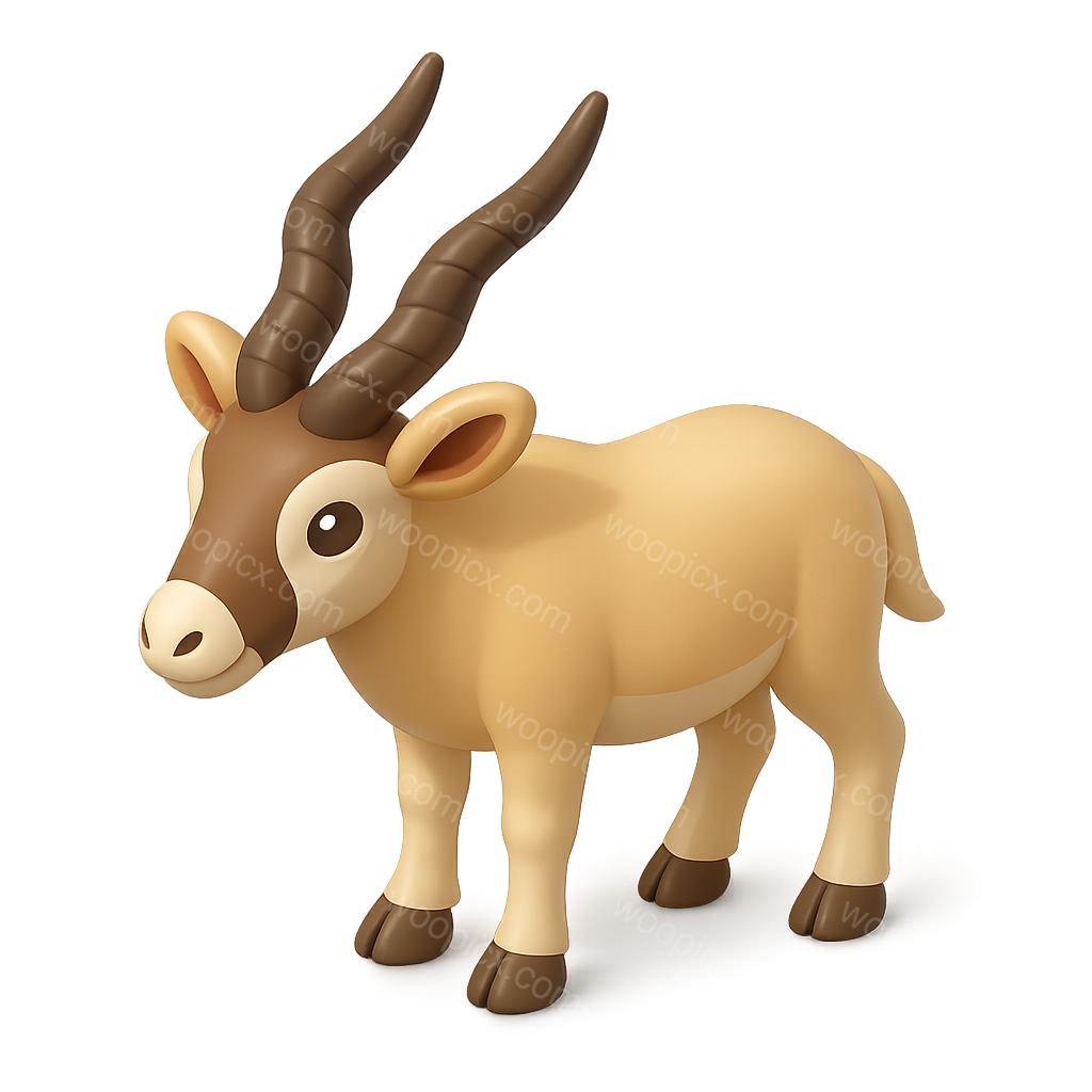 A stylized 3D icon of an addax antelope, featuring a three-quarter view with a smooth, cartoon-like design. The antelope has distinctive curved horns and a soft color palette.