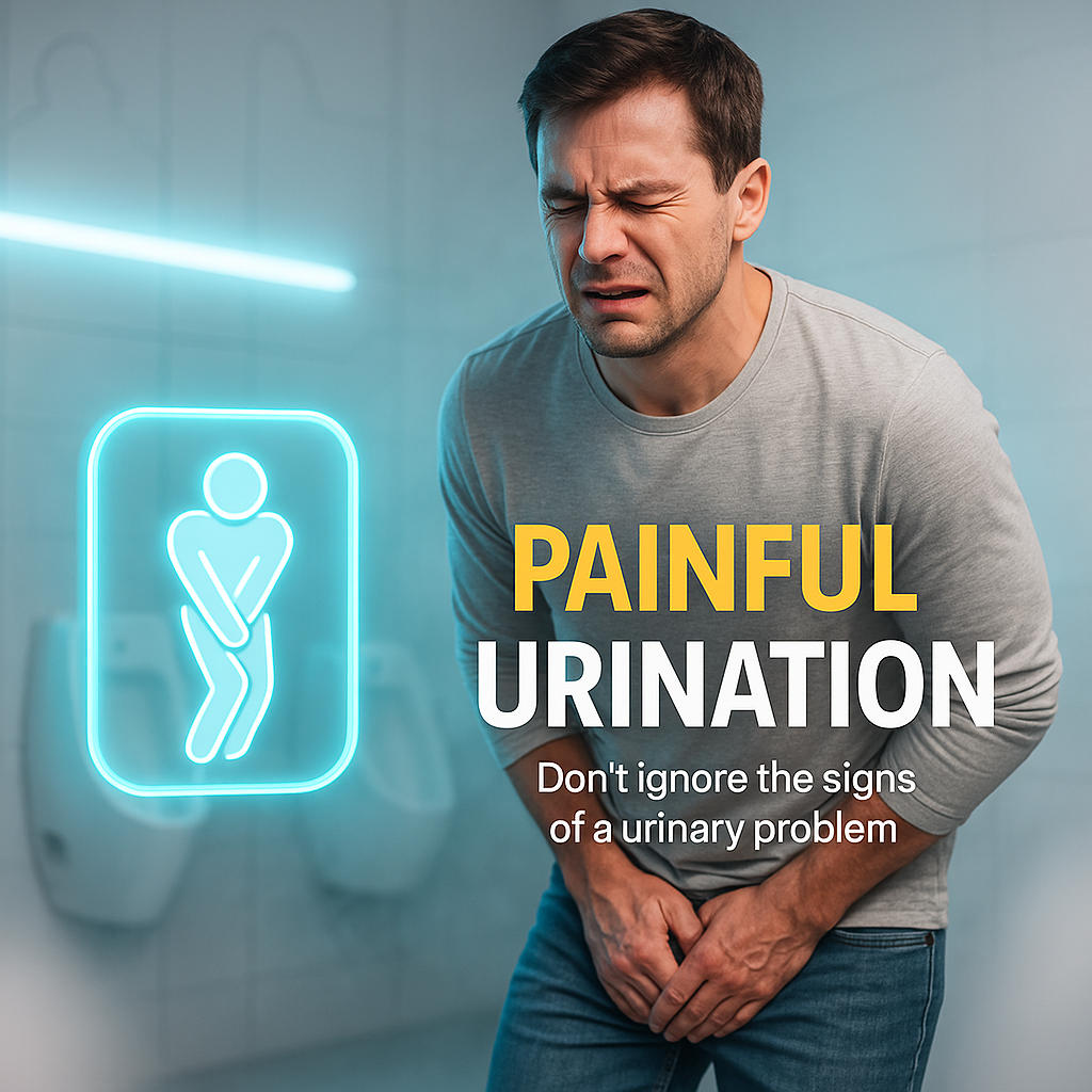 /Collection: /by davooda/Type: PNG/A social media post focused on urinary health, featuring an individual experiencing discomfort. The modern design includes neon graphics, aimed at raising awareness for urinary problems.