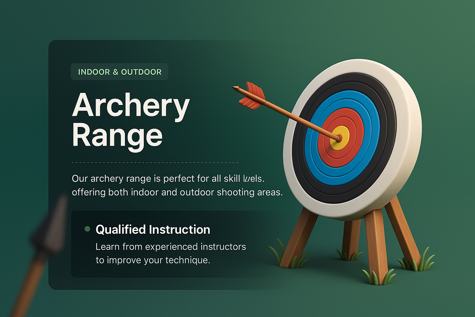 /Collection: /by davooda/Type: PNG/A visually appealing 3D illustration of an archery range featuring a target and an arrow. The design includes a dark panel with instructional text, enhancing the instructional theme.