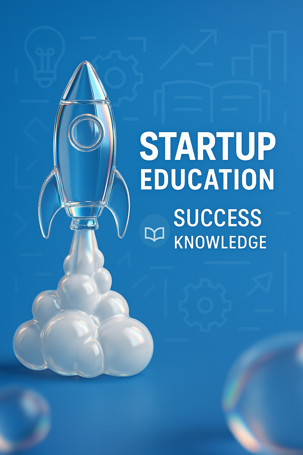 /Collection: /by davooda/Type: PNG/A vibrant 3D graphic illustrating a rocket launching from clouds, symbolizing startup education and success. Ideal for educational content, presentations, and marketing.