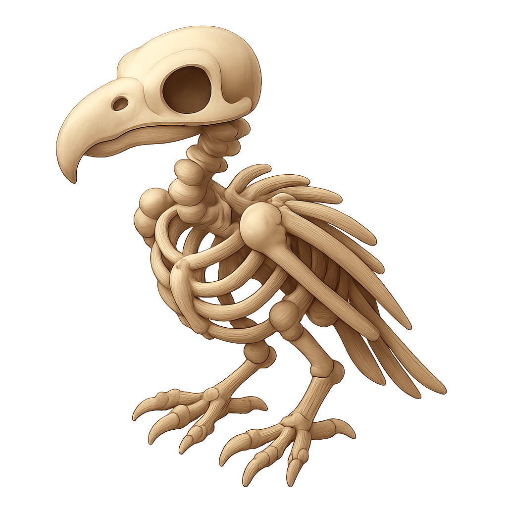 A detailed illustration of a bird skeleton, showcasing its skeletal structure in a stylized manner. Ideal for educational purposes or artistic inspiration.